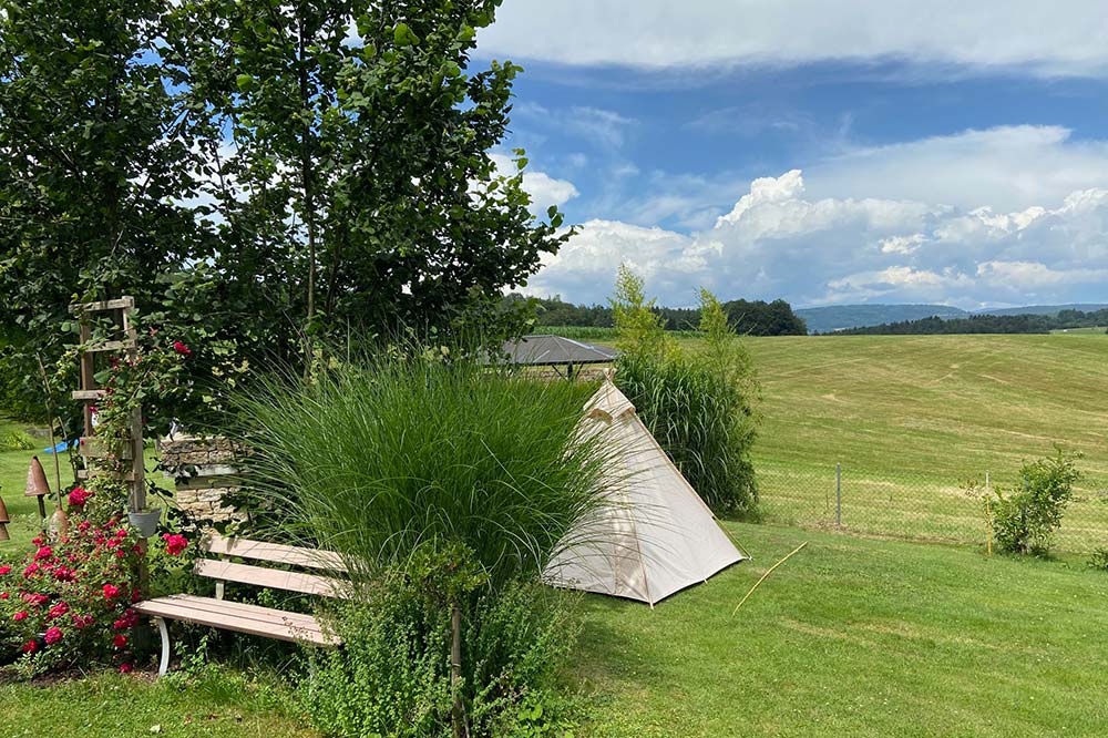 - Gemütliches Wohnzimmer mit Kaminofen, Sitzgarnitur, Smart‑TV. Und Ausgang zur überdachten Terrassen Ost- und Südseite, Holzkohlegrill, direkter Zugang zum Spielplatz auf der großen Wiese.